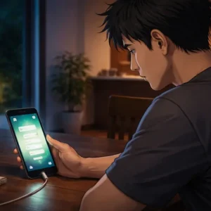 Layar ponselnya memantulkan wajahnya sendiri yang tampak letih. Di sekelilingnya, dapur masih berantakan. Panci belum dicuci. Sisa potongan buah masih di meja. Anaknya baru saja tertidur setelah rewel hampir satu jam.