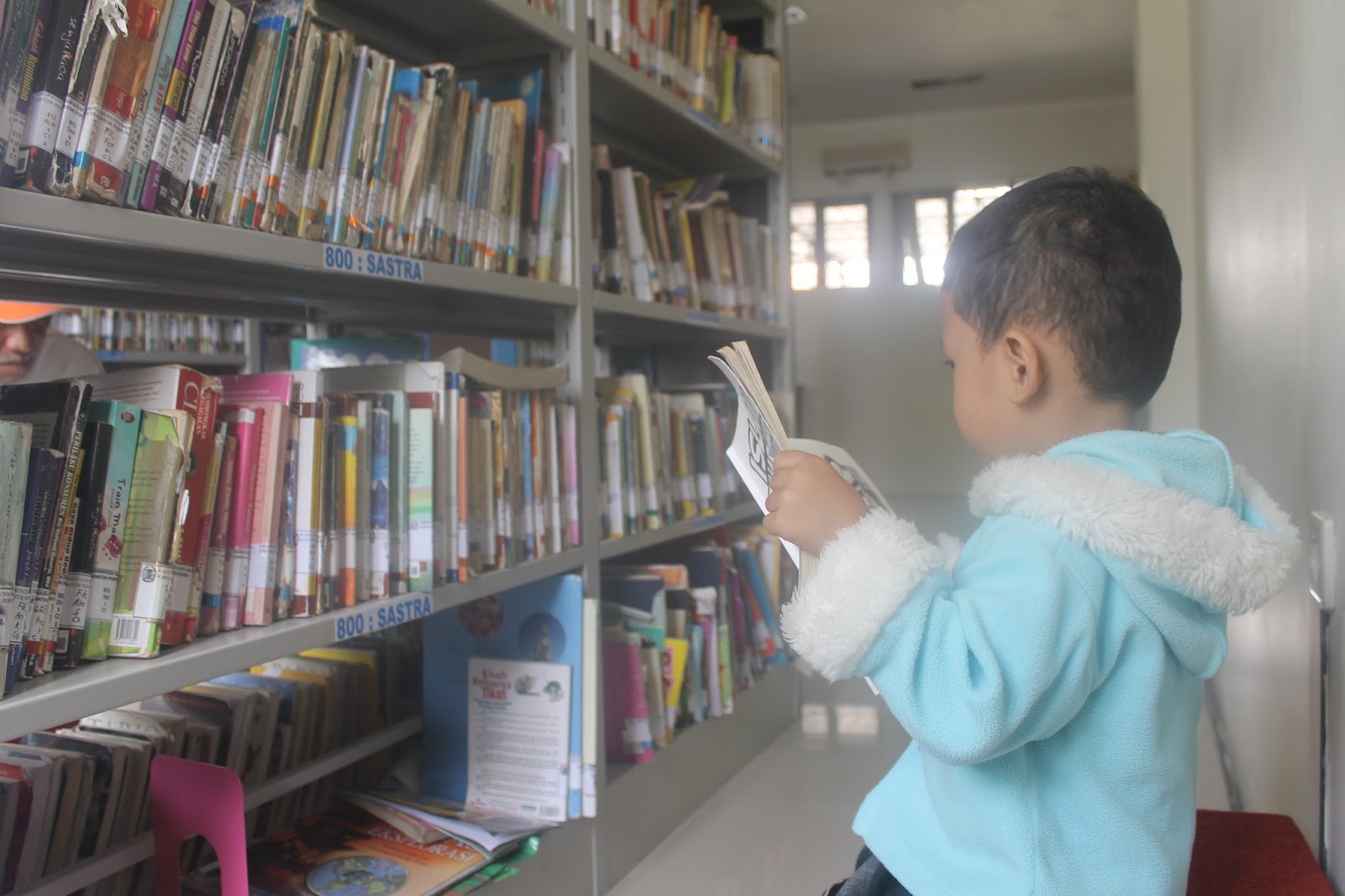 Koleksi buku ada di lantai 1, mulai dari buku fiksi dan non fiksi. Buku non fiksi mencakup ilmu manajemen, filsafat, ilmu perikanan (kalau tidak salah) dan lain-lain. Selain ruang koleksi buku, ada juga tempat untuk bermain anak-anak. Ada tempat khusus membaca di lantai 2, OPAC atau komputer pencarian judul buku, koleksi koran-koran lokal dan nasional per tahun, dan ensiklopedia, buku-buku referensi, undang-undang, dan buku langka.
