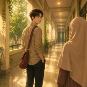 Tubuhnya tinggi, rapi, dan terlalu tenang untuk seseorang yang tampak begitu lelah. Wajahnya bukan wajah yang meminta perhatian, tapi wajah yang membuat orang lain diam lebih lama. Tatapan matanya teduh, tapi ada sesuatu di baliknya—seperti seseorang yang sudah terlalu lama menahan diri agar tetap tampak wajar.